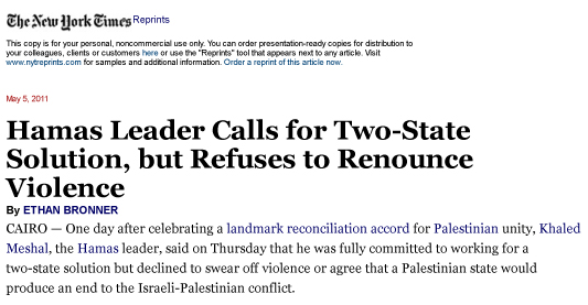 Despite Assurances by NYT and Guardian, Hamas Still Rejects Israel